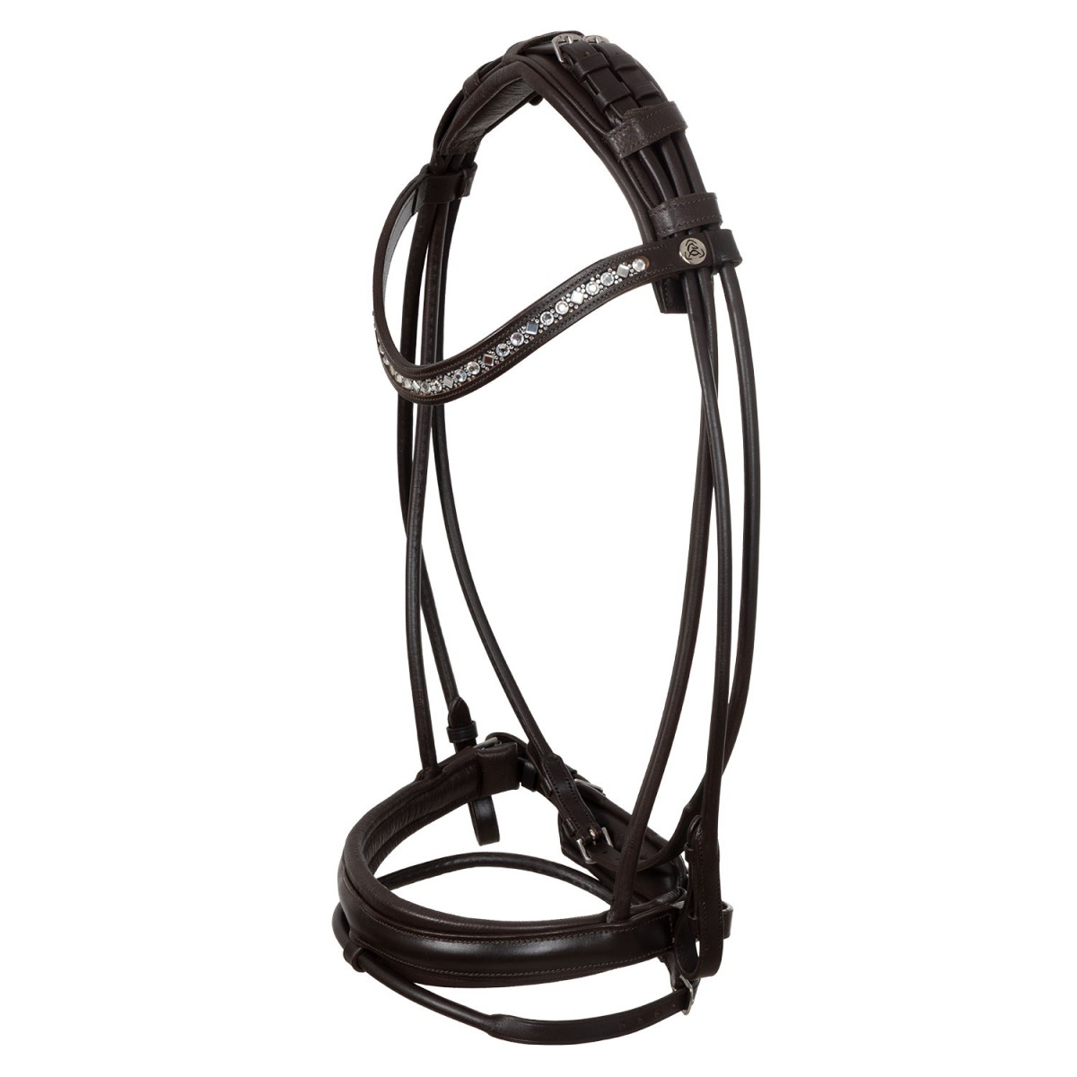 The padded noseband, with a white, blackbrown piping, gives the bridle a refined and sophisticated design.
