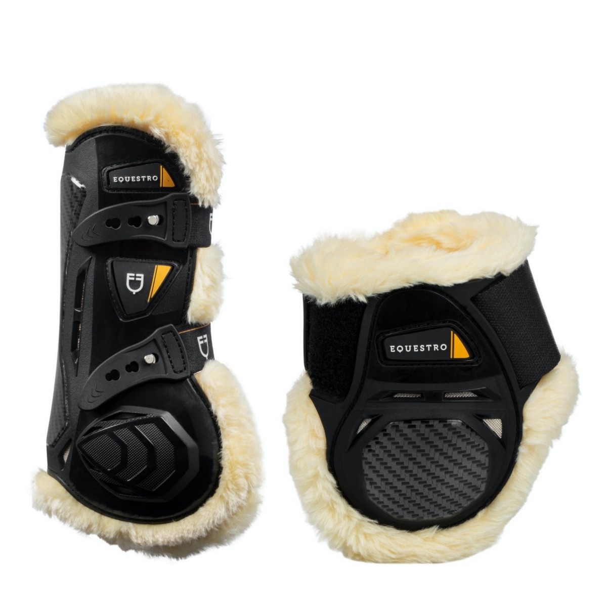 Bumpers made with an innovative mix of neoprene and polyurethane, light but robust, ergonomically shaped to fit perfectly the anatomy, ensuring maximum comfort and freedom of movement. The padded synthetic sheepskin interior is specially designed for sports use and therefore designed to promote optimal breathability, ensuring constant air circulation. Equipped with elastic straps with double safety quick release, easily adjustable to meet specific needs.