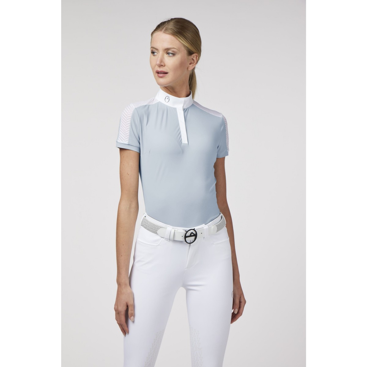The Alimini shirt is made of lightweight, breathable fabric that does not need to be ironed and “sun block”, which can protect the sun’s rays. The shirt is ideal for racing during mid-season. The shirt features semi-transparent fabric inserts in the sleeves and front. Snap button closure and collar with printed logo.