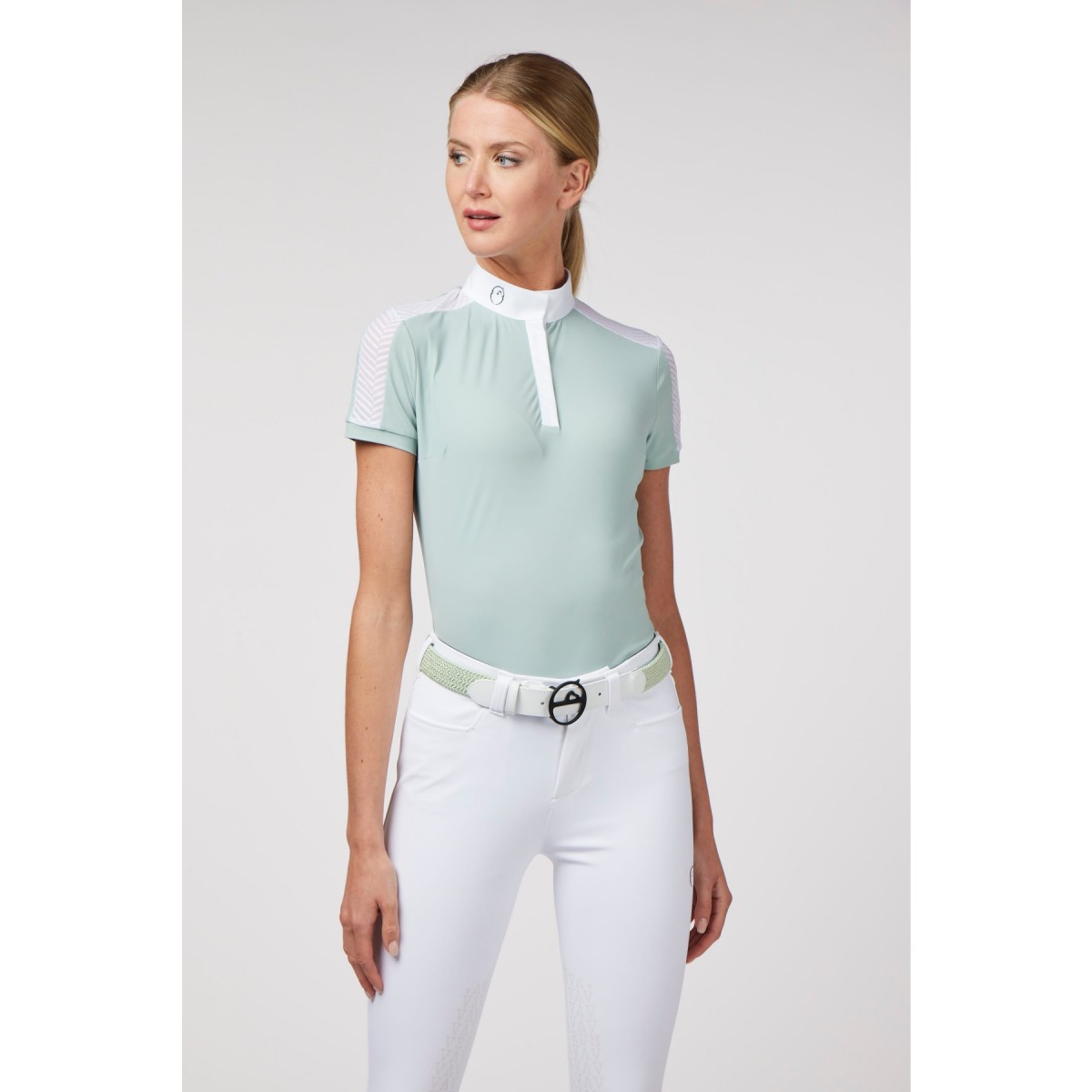 The Alimini shirt is made of lightweight, breathable fabric that does not need to be ironed and “sun block”, which can protect the sun’s rays. The shirt is ideal for racing during mid-season. The shirt features semi-transparent fabric inserts in the sleeves and front. Snap button closure and collar with printed logo.
