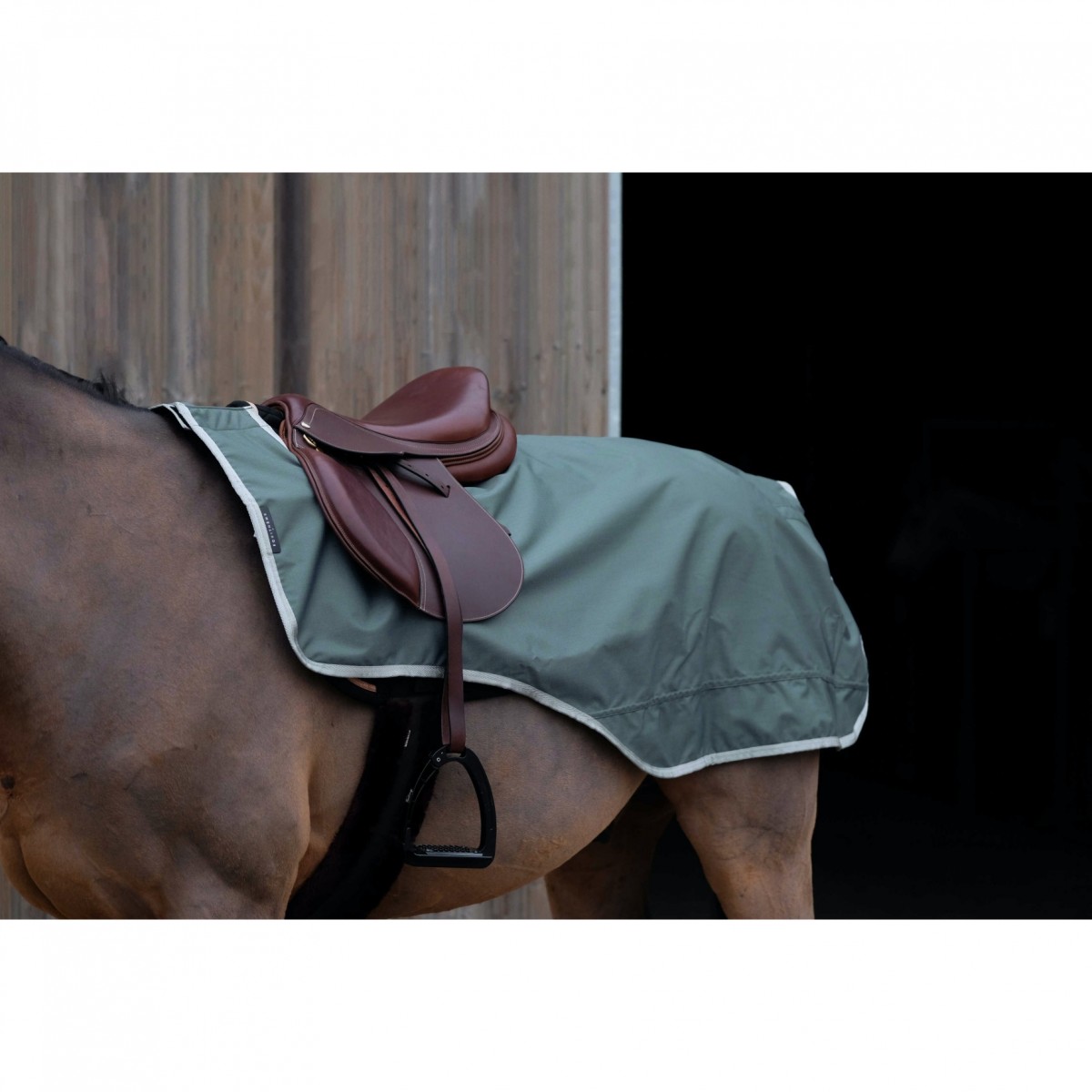 Made of 600 denier waterproof and breathable recycled Ripstop polyester with anti-pilling micro-fleece lining. Saddle cut and reduced front cut for better contact. Velcro closure at the withers and tail strap.